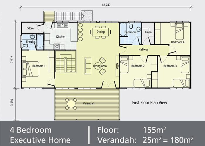 - C'è un piano di 155 m2 e 25 m2 di verande, per un totale di 180 m2