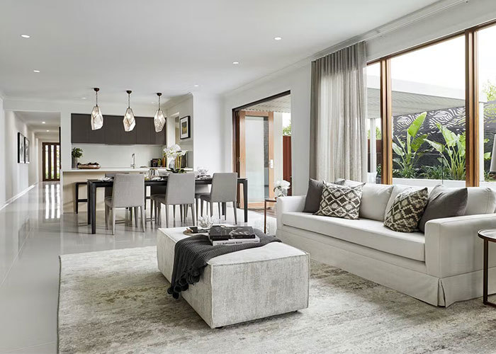Dalla parte posteriore della casa si trova un confortevole soggiorno, leggermente separato dalla zona pranzo e cucina.o tempo con la famiglia alla fine della giornata.