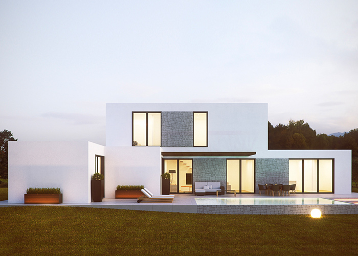 Turku House is a stunning contemporary villa defined by its bold architectural design and elegant simplicity. The home features a clean, modern aesthetic with a dynamic, staggered form that creates visual interest. Its overall footprint is shaped like an "L," measuring 17 by 12 meters, which allows for a thoughtful separation of living zones and optimal outdoor integration.